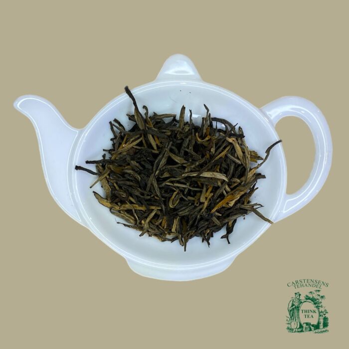 Endnu en eksklusiv specialitet fra Østen. Denne kinesiske sorte te bliver fremstillet i provinsen Fujian. Teen bliver kun plukket i april måned når de nye skud fremkommer. Det lange slanke blad, med de mange flade gyldne tips er skøn at skue. I udseende og smag minder teen om en fin krydret Assam fra den senere plukning. Kan nydes med mælk eller fløde