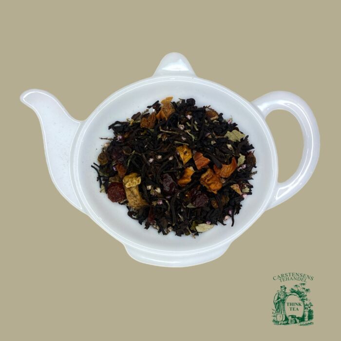 Dejlig sort teblanding med blød sødme fra blandt andet hyben og æble. Blandingen blev i sin tid lavet til Rudbecks på Fanø.