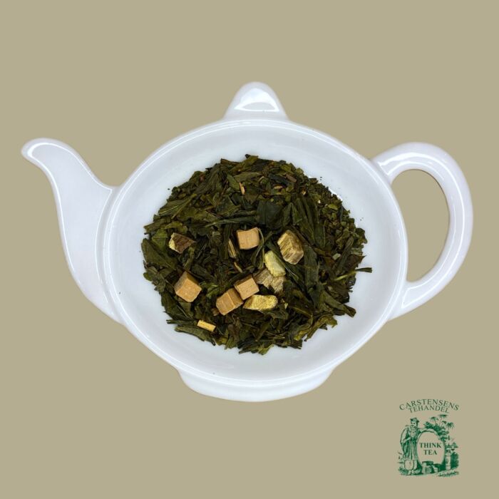 Ingrediens: grøn te te, karamelstykker (sukker, glukose, SMØRFEDT, humectant (E420), emulgator (E471)), lemon, lakridsrod, krokant (sukker, HASSELNØD), aroma ENERGI: 6KJ/2Kcal - FEDT:<0,5gr., heraf mættet fedt: <0,1gr. - KULHYDRATER:0,5g, heraf sukker: <0,5gram - PROTEIN: <0,5gr. - SALT: <0,01 gr