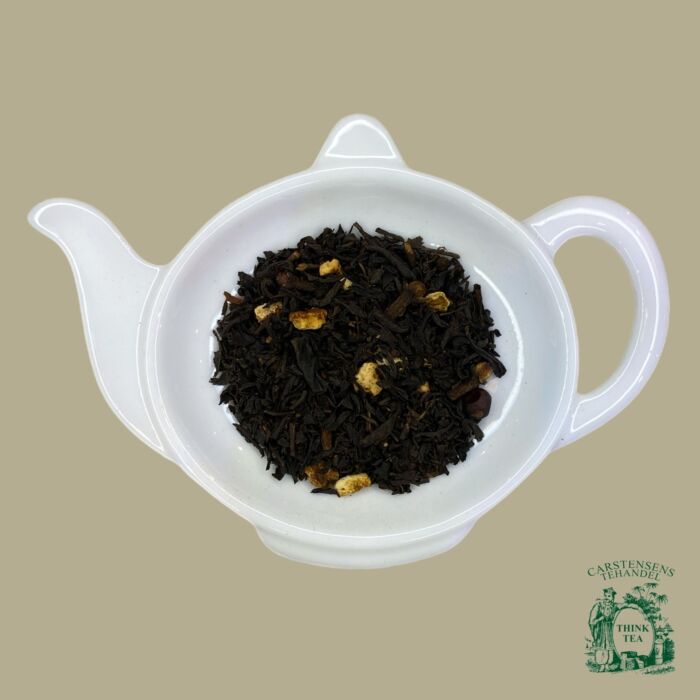 Sort krydret te med naturlig aroma og orange skal samt blomst og nelliker. Teen er velegnet til juleblandinger.