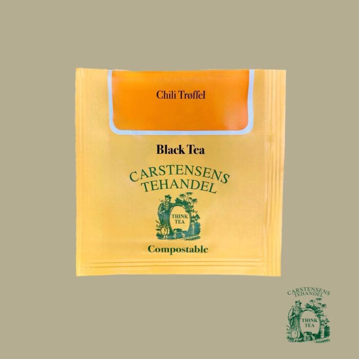 Ingrediens; Sort te, Kakao, aroma, rosa peber, hvid chokolade (FULDKORNS HVEDEMEL, HVEDE STIVELSE, HVEDEKIM, sukker, salt), kakao smør, SØDMÆLKSPULVER. Emulgator:soja, vanille aroma) chili stykker (1%) ENERGI: 4KJ/1Kcal - FEDT:<0,5gr., heraf mættet fedt: <0,1gr. - KULHYDRATER:0,5g, heraf sukker: <0,5gram - PROTEIN: 0,5gr. - SALT: <0,01 gr.